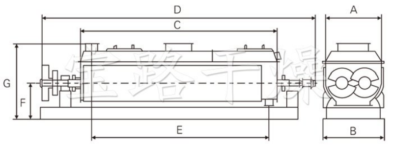 槳葉干燥機(jī)的殼體為W型,殼體內(nèi)一般安排二到四根空心攪拌軸。殼體有密封端蓋與上蓋,防止物料粉塵外泄。