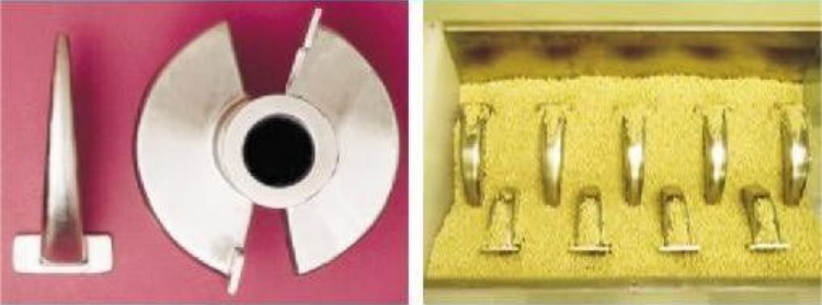 空心軸上密集排列著楔型中空槳葉,熱介質(zhì)經(jīng)空心軸流經(jīng)槳葉。單位有效容積內(nèi)傳熱面積很大,熱介質(zhì)溫度從-40℃到320℃,可以是水蒸汽,也可以是液體介質(zhì):如冰鹽水、熱水、導(dǎo)熱油等。間接傳導(dǎo)加熱,熱量主要用來(lái)加熱物料,使用極少量空氣帶走濕氣,熱量損失僅為通過(guò)器體保溫層向環(huán)境的散熱,以及少量尾氣攜帶的熱量。相互齒合的楔型槳葉之間具有互相清潔功能;而物料顆粒與楔型面的相對(duì)運(yùn)動(dòng)產(chǎn)生洗刷作用,能夠洗刷掉楔型面上附著物料,使運(yùn)轉(zhuǎn)中一直保持著清潔的傳熱面。